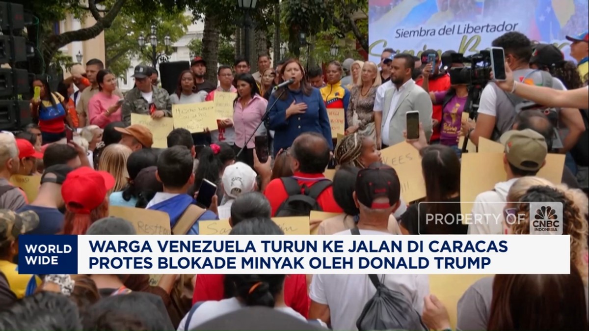 Ribuan warga Venezuela turun ke jalan di ibu kota Caracas untuk memprotes sanksi terbaru AS yang menargetkan sektor minyak