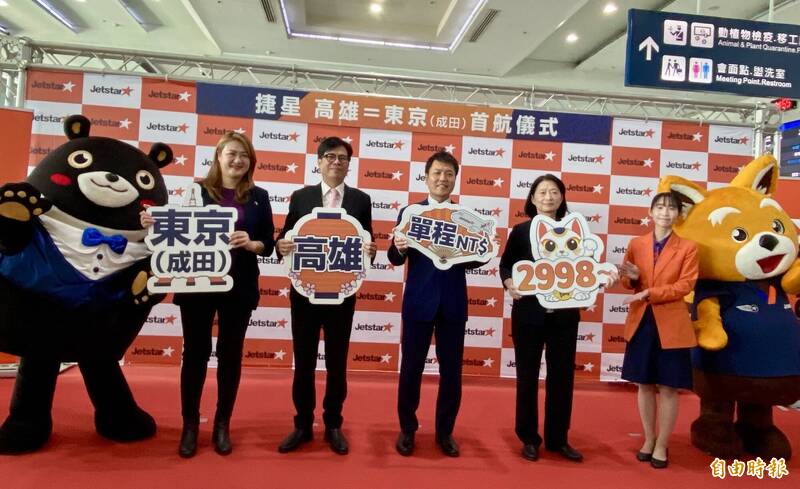 捷星日本航空今(18)日首航高雄—東京(成田)航線,推出單程最低票價2998元起,且免收燃油附加費。高雄市長陳其邁參加首航典禮,當面向捷星日本社長田中正和表達能多多搭載日本遊客...…