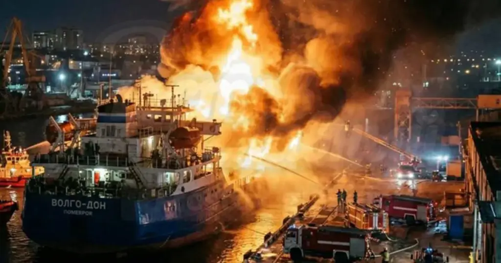 Ruski mediji su objavili da su hitne službe odmah upućene na mjesto događaja, gdje gase požar na tankeru koji je pogođen dok je bio usidren u luci