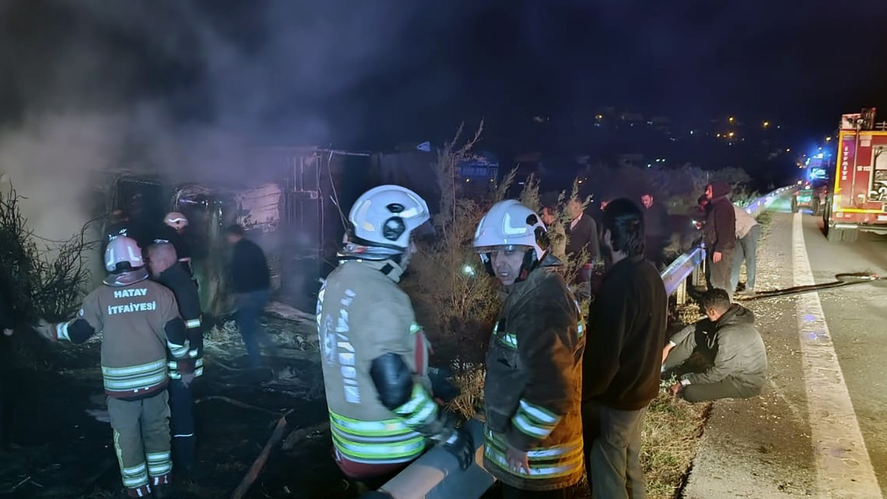 Hatay'da angus yüklü TIR'ın devrildiği kazada 2 kişi yaşamını yitirdi. TIR'daki yangın ile angusların yol kenarında koştuğu anlar, cep telefonu kamerasıyla kaydedildi.