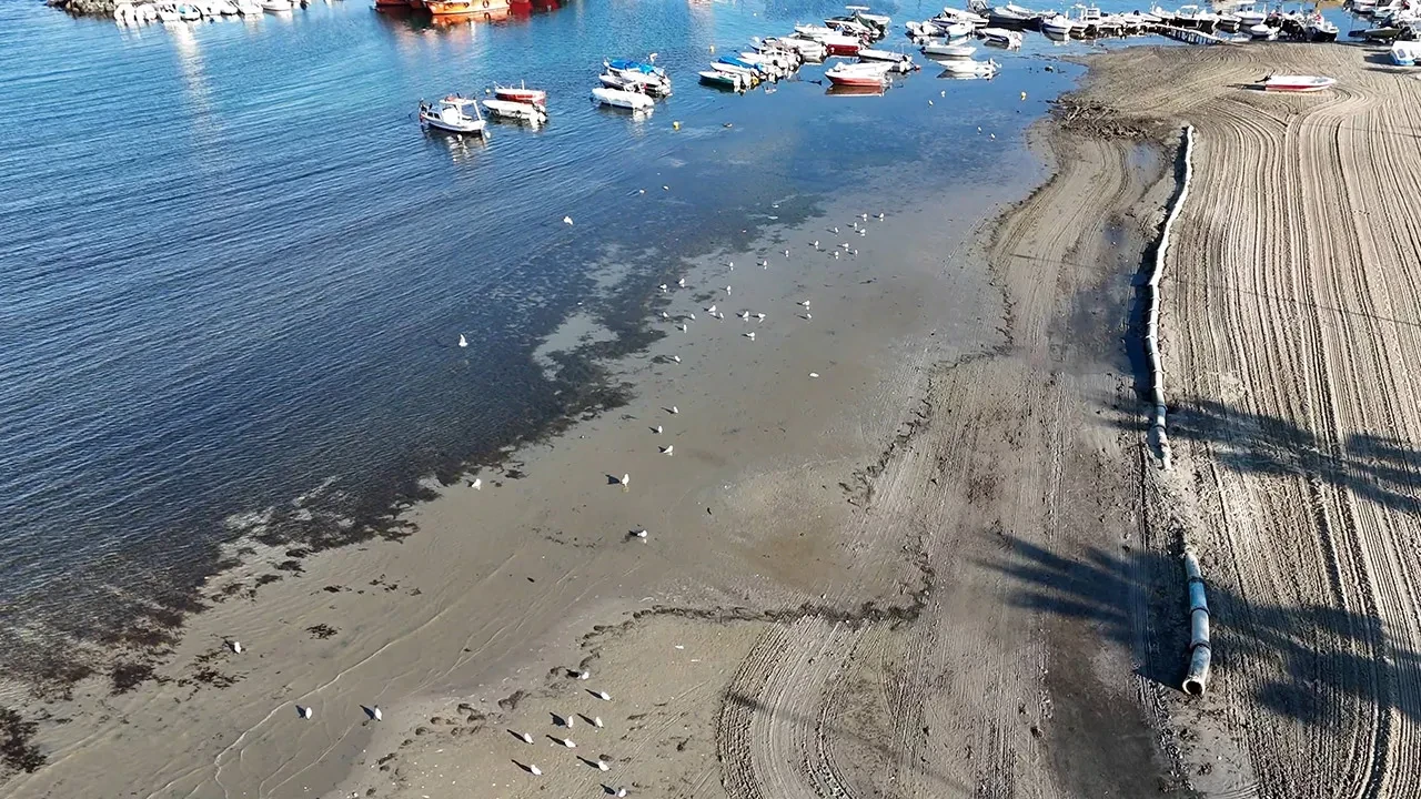 Tekirdağ'ın Marmaraereğlisi ilçesinde denizin çekilmesi drone ile havadan görüntülendi. Bölgede yaşayan vatandaşlar yılın belirli dönemlerinde çekilmelerin yaşandığını belirtti.