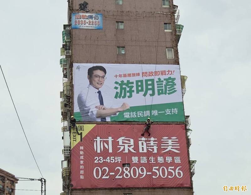 藍綠新生代搶灘第一選區 前國會幕僚游明諺淡水竹圍掛首面看板表態參選