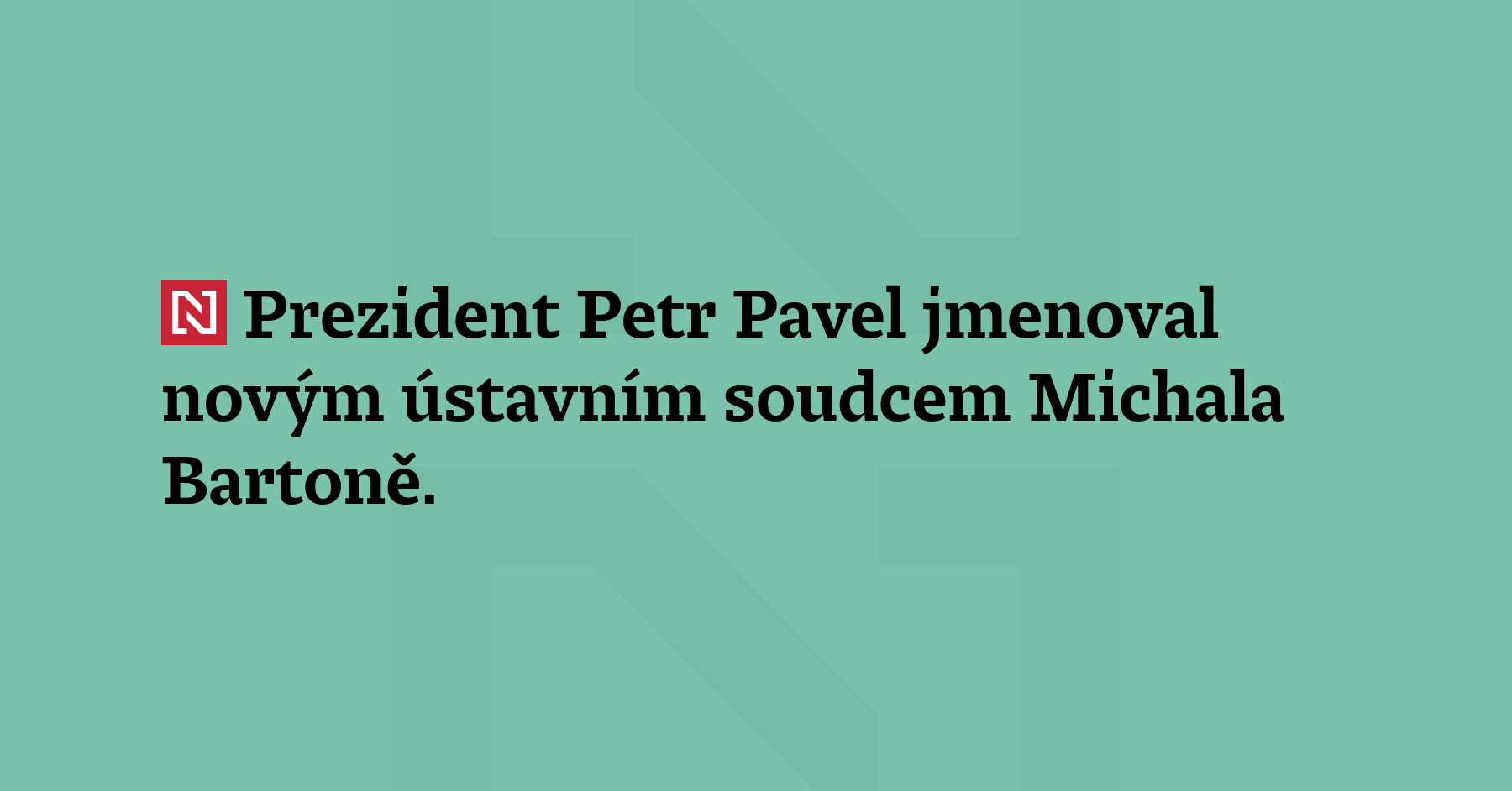 Prezident Petr Pavel jmenoval novým ústavním soudcem Michala Bartoně. Bartoň je vysokoškolský pedagog a odborník na ústavní právo. (ČT24)