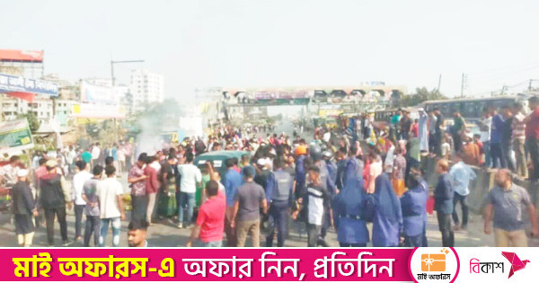 ঢাকা-চট্টগ্রাম মহাসড়কে বেতনের দাবিতে মহাসড়ক অবরোধ