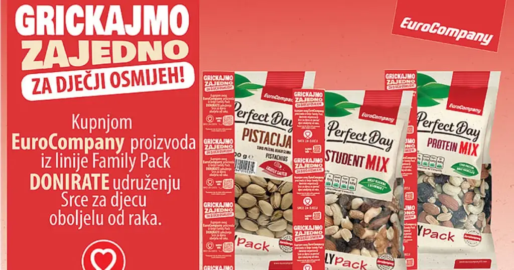 EuroCompany99, regionalni lider u kategoriji orašastih plodova, suhog voća i zdravih snackova, provodi društveno odgovornu kampanju „Grickajmo zajedno za dječji osmijeh“, posvećenu djeci oboljeloj od raka i njihovim porodicama u Bosni i Hercegovini