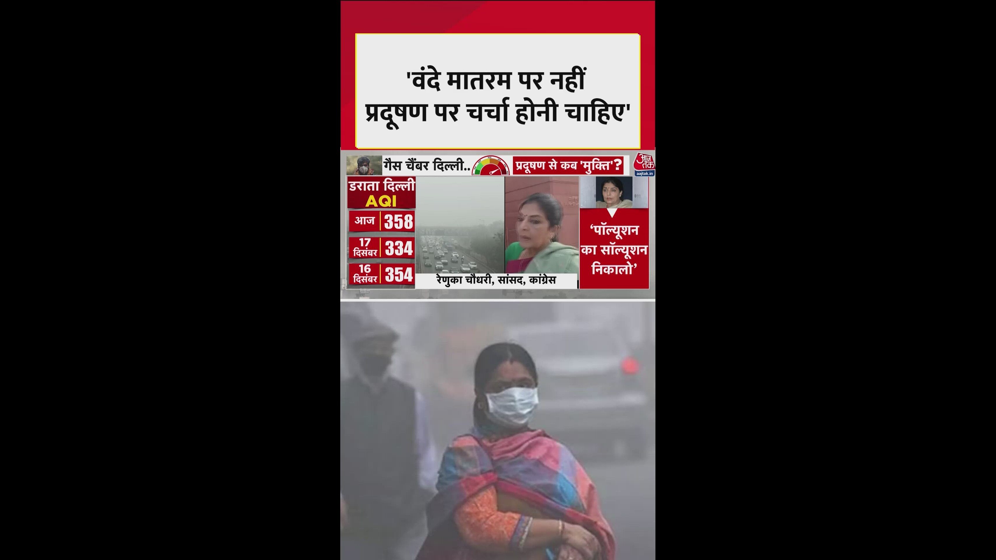 रेणुका चौधरी का कहना है कि हमारे बच्चे, हमारे बुजुर्ग, हमारे देशवासी, हमारे दिल्लीवासी शर्मिंदा हो रहे हैं. हम दुनिया के नज़रों में ये सोचते हैं कि भारत जो एक बड़ा लोकतंत्र है उसकी राजधानी में हम सांस तक नहीं ले पा रहे हैं. और इन लोगों को ये अहसास नहीं हो रहा कि ये एक बहुत बड़ा मुद्दा है. संसद में इस पर कम से कम दस घंटे की चर्चा होनी चाहिए थी. वंदे मातरम एक सम्मानित गीत है जिसे हम सभी जानते हैं, लेकिन आज कुछ लोग इसे एक नए नशे की तरह लेकर हमें समझा रहे हैं कि इसका मतलब क्या है. लेकिन हमारे रग रग में वंदे मातरम समाया हुआ है.