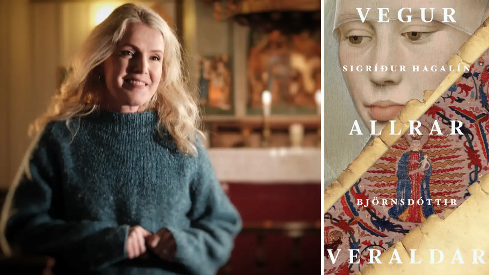 Soffía Auður Birgisdóttir skrifar: Það er best að taka fram strax hér í upphafi að hinn sögulegi tvíleikur Sigríðar Hagalín Björnsdóttur Hamingja þessa heims (2023) og Vegur allrar veraldar (2025) er, að mati þeirrar sem hér talar, magnað verk og merkilegt í samhengi íslenskra samtímabókmennta. Í þessum tveimur skáldsögum vefur Sigríður saman sögu um samtímamann okkar, gallagripinn Eyjólf Úlfsson, fyrrverandi prófessor í sagnfræði við Háskóla Íslands, og frásögn af litríku og lagskiptu samfélagi fimmtándu aldar þar sem þráðurinn spinnst um Ólöfu ríku Loftsdóttur og þau átök sem hlutust af hrottalegu morði á eiginmanni hennar Birni Þorleifssyni, hirðstjóra konungs. Þetta er marglaga og flókinn söguheimur en Sigríður hefur afburða góð tök á honum, hún stýrir öllum þráðum frásagnarinnar fagmannlega og spinnur af miklum hagleik. Hér gefst ekki tími til að kafa djúpt í söguheiminn, bara fullyrt að lesendur eiga gott í vændum að rekja sig eftir þráðunum og uppgötva hvernig þeir koma saman og mynda fjölbreytileg mynstur. Það myndmál vefnaðar sem hér hefur verið gripið til er ekki helber klisja, minna má á að orðin texti og vefur eiga sömu orðsifjalegu rætur; hvort tveggja leitt af orðinu textúra úr latínu og þýðir að vefa eða fella saman. Það er því engin tilviljun að ein aðalpersóna seinni bókarinnar, Sunneva, er afburða handavinnu- og saumakona sem í bókarlok situr við vefstól og vinnur þar refil mikinn sem með myndmáli sínu dregur fram helstu þætti þeirra atburða sem höfundur hefur fjallað um í ritmálinu. Vegur allrar veraldar er kynnt sem sjálfstætt framhald af fyrri skáldsögunni, Hamingju þessa heims , sem merkir yfirleitt að hægt sé að lesa bókina án þess að þekkja þá fyrri. Ég hygg þó að þeir sem lesa skáldsögurnar báðar fái mest fyrir sinn snúð því hér eru margar af sömu aðalpersónum á ferð og saman mynda bækurnar tvær samfelldar frásagnarfléttur, hvora á sínu tímasviði. Hér verður athyglinni beint að seinni bókinni en hlustendum bent á umsögn um þá fyrri sem Sölvi Halldórsson flutti í Víðsjá haustið 2023. Vegur allrar veraldar hefst haustið 1479 þegar kona kemur að Reynistaðarklaustri eftir reið norður yfir Kjöl og teymir hest undir gömlum og fársjúkum manni. Þar eru þau komin, Sunneva saumakona og Sveinn döggskór, hirðskáld Ólafar ríku, en frásagnir hans fá lesendur af skinnhandritum sem komast fyrir tilviljun í hendur Eyjólfs sagnfræðings eftir ýmsum leiðum. Sveini döggskó er ekki hugað líf en Ólöfu ríku, sem hann hefur þjónað dyggilega alla ævi, er mikið í mun að hann skrásetji sannleikann um atburðina í Rifi þegar Englendingar drápu Björn, áður en hann deyr. „En með því að skáldið var rænulaust og málstola“, eins og segir í inngangskaflanum. „þá tók abbadísin til þess ráðs að setja fylgdarkonu hans til að segja frá enda hefði hún einnig verið í þjónustu Ólafar og séð og heyrt margt af því sem drifið hefði á daga hennar, engu síður en skáldið“ (12). En Sunneva er hvorki læs né skrifandi og því fær ein af ungnunnunum, Steinvör Guðólfsdóttir, það hlutverk að skrá frásögn hennar á skinn. Þetta er skemmtilegur snúningur á frásögninni; ómenntuð alþýðukona tekur við af menntaða hirðskáldinu sem sögumaður og við það breytist sjónarhornið allverulega – enda „var það trúa móður Agnesar [abbadísarinnar] að konur sæju og vitnuðu um aðra hluti en karlar, og engu ómerkari“ – eins og segir í inngangi. Vegur allar veraldar vegar hefur undirtitilinn Skálkasaga og mig langar að staldra aðeins við þann merkimiða. Minna má á að fyrri sagan, Hamingja þessa heims , ber undirtitilinn Riddarasaga og er þar vísað til frásagnarinnar sem rís upp af síðum skinnhandritanna sem Eyjólfur fann í útlegð sinni í gömlum kistum á Staðarfelli. Undirtitillinn vísar einnig til þess að eiginmaður Ólafar ríku, Björn Þorleifsson hlaut riddaratign af Kristjáni konungi fyrsta árið 1457 en átök sögunnar snúast að mestu um þessi valdamiklu og forríku hjón. Með undirtitlinum skálkasaga vísar höfundur til ákveðinnar tegundar evrópskra sagna sem komu fyrst fram á Spáni á 16. öld – novela picaresca . Slíkar sögur eru viðburðaríkar og aðalpersónan, la picaro eða skálkurinn , segir sjálfur frá. Persónan hefur föst karaktereinkenni; hún er af lægri stéttum, fædd í örbirgð en kemur sér áfram í veröldinni á eigin verðleikum og kænsku og þarf gjarnan að beita prettum og svikum. Helsta leið persónunnar upp úr örbirgðinni er að gangast í þjónustu þeirra sem mega sín einhvers í samfélaginu. Ferðalög og flækingur er órjúfanlegur þáttur í lífshlaupi persónunnar, sem reynir á ferðum sínum mikið harðræði og óréttlæti sem gerir hvort tveggja að afhjúpa valdníðslu og ofbeldi yfirstéttarinnar og hæðast að lífsháttum hennar, hégóma, fégræðgi og öðrum dauðasyndum. Flest þessi einkenni má heimfæra upp á Sunnevu Sigrúnardóttur, sem rís upp úr örbirgð og ofbeldi og verður um tíma ráðskona í Skálholti, og má því ætla að undirtitillinn vísi til hennar. Það er líka skemmtilegur snúningur á bókmenntategundinni því fáar evrópskar skálkasögur hafa konur sem aðalpersónur, alla vega þegar slíkar sögur stóðu í sem mestum blóma, þótt nokkrar hafi verið skrifaðar síðar. Þar má til dæmis nefna átjándu aldar söguna af Moll Flanders sem eignuð er enska rithöfundinum Daniel Defoe, sem þekktastur er fyrir frásögn sína af Róbinson Krúsó . En einnig má velta fyrir sér hvort samtímamaðurinn Eyjólfur beri ekki líka einhver einkenni skálksins, ýmislegt í hans karakter og lífsreynslu fellur ágætlega inn í formið. S