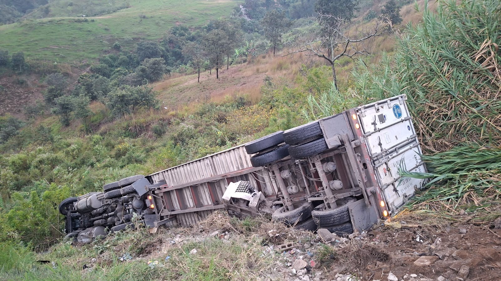 Tráiler cargado con banano cae a barranco en la Cumbre del Águila