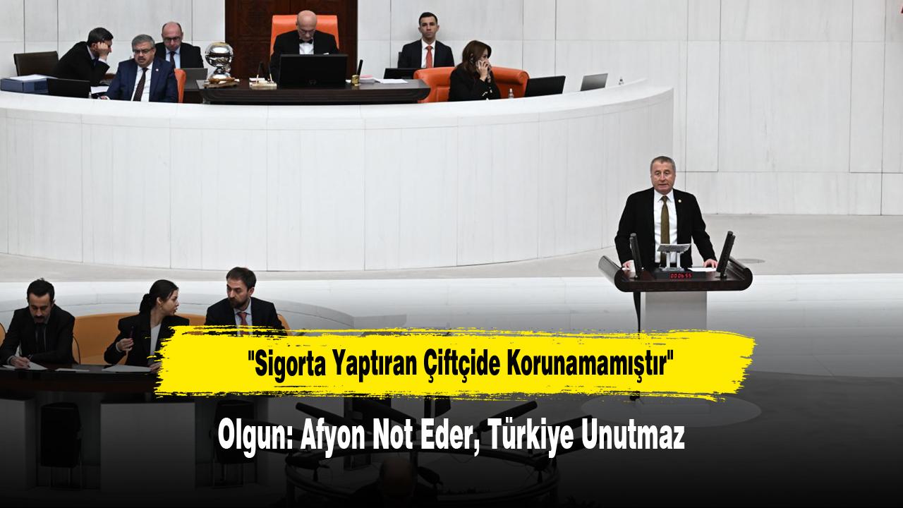 İYİ Parti Genel Başkan Yardımcısı ve Afyonkarahisar Milletvekili Hakan Şeref Olgun, TBMM Genel Kurulu'nda yaptığı konuşmada çiftçinin don sigortasını, üreticinin kredi borcunu, Afyon'luyu ve Afyon'u anlattı.