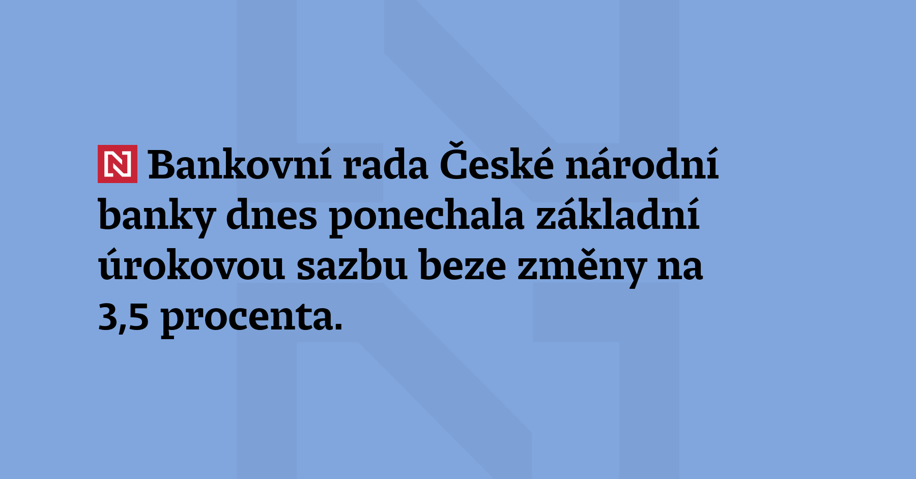 Bankovní rada České národní banky dnes ponechala základní úrokovou sazbu beze změny na 3,5 procenta. Informoval o tom ředitel odboru komunikace ČNB Jakub Holas. Finanční trh stabilitu úrokových sazeb očekával. Základní úroková sazba je na nynější úrovni od začátku května. (ČTK)