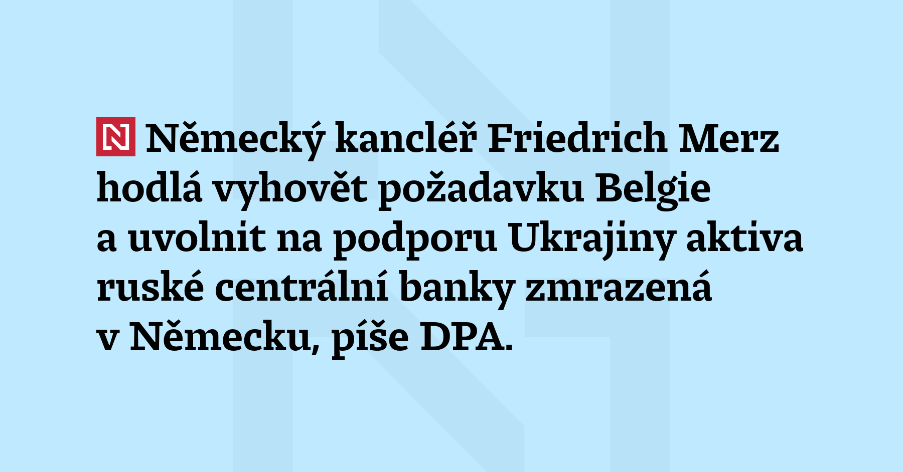 Německý kancléř Friedrich Merz hodlá vyhovět požadavku Belgie a uvolnit na podporu Ukrajiny aktiva ruské centrální banky zmrazená v Německu, píše DPA. (SZ)
