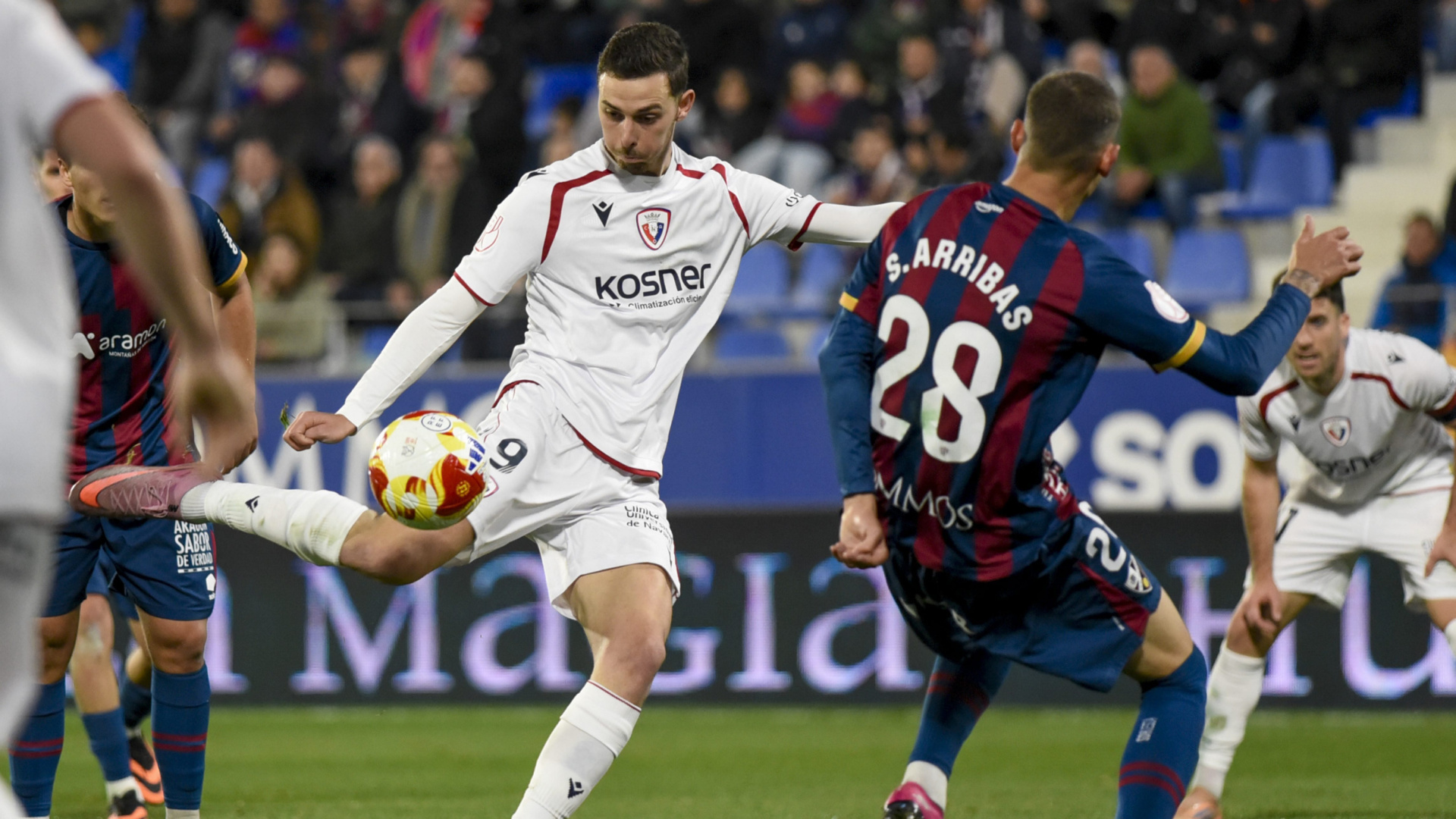 La SD Huesca rozó el pase histórico a los octavos de final de la Copa del Rey, pero Osasuna acabó imponiendo su mayor pegada en una eliminatoria vibrante que se decidió en la prórroga (2-4). El equipo aragonés se adelantó, resistió con oficio y volvió a soñar con el empate en el tiempo extra, pero los goles de Raúl García y Budimir terminaron inclinando la balanza para los navarros en una noche intensa, de buen fútbol y digna de elogio en El Alcoraz. El partido también sirvió como escaparate para los menos habituales. Bolo apostó por un once cargado de oportunidades, reservando a muchos titulares para el compromiso liguero, y la respuesta fue notable. La SD Huesca firmó un arranque excelente, con presión alta, ritmo y protagonismo de jóvenes como Manu Rico, Ro Abajas o Willy, mientras Osasuna dosificaba esfuerzos pensando en su delicada situación en liga. El buen tono local se tradujo en el 1-0 de Luna, que premiaba la solidez y la implicación defensiva del conjunto azulgrana. Sin embargo, cuando mejor estaba el Huesca, Raúl García empató en el descuento de la primera parte, un golpe anímico que cambió el signo del encuentro. En la reanudación, Osasuna acumuló las ocasiones más claras, mientras los de Bolo resistían y movían el banquillo para sostener el pulso. La prórroga elevó aún más el dramatismo. Raúl García adelantó a Osasuna, pero Kortajarena devolvió la ilusión con el 2-2. El sueño, sin embargo, se apagó en los últimos minutos, cuando Budimir, decisivo en el juego aéreo, fue decisivo en los dos goles navarros. La eliminación dejó sabor amargo, pero también la sensación de que El Alcoraz y este equipo están preparados para futuras batallas.