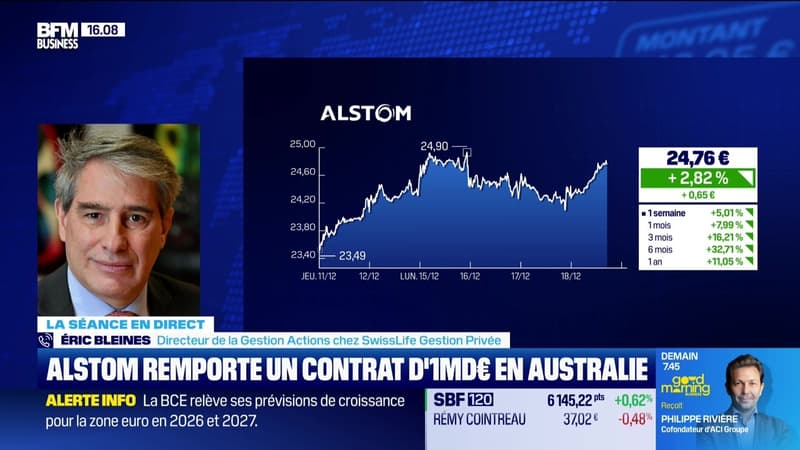 Ce jeudi 18 décembre, Éric Bleines, directeur de la Gestion Actions chez SwissLife Gestion Privée, s'est penché sur la baisse des taux de la BOE après un vote serré, le contrat d'un milliard d'euros en Australie pour Alstom, le prolongement de l'accord de licence entre EssilorLuxottica et Burberry, la chute boursier d'ADP après le rejet des hausses des redevances par l'ART, le maintien des taux directeurs de la BCE, ainsi que les acteurs à fort potentiel en 2026, dans l'émission BFM Bourse présentée par Guillaume Sommerer. BFM Bourse est à voir ou écouter du lundi au vendredi sur BFM Business.