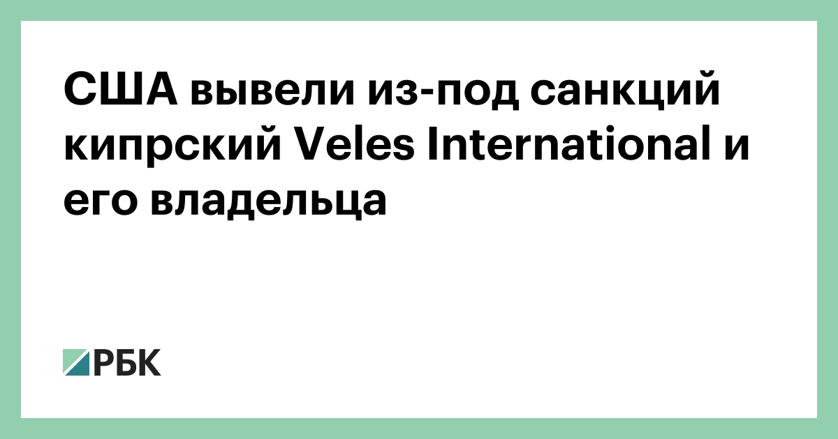 Минфин США снял санкции с кипрской Veles International Limited и ее владельца Дмитрия Бугаенко, следует из данных на сайте министерства.