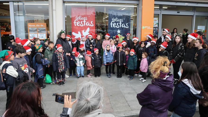 Los niños del colegio O Sello, en Cabral, recorren las calles para pedir el aguinaldo