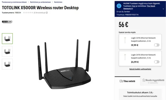 Totolink X5000R -reitittimestä on löytynyt haavoittuvuus, joka mahdollistaa laitteiden kaappaamisen. Laitetta myydään Gigantin verkkokaupassa.
