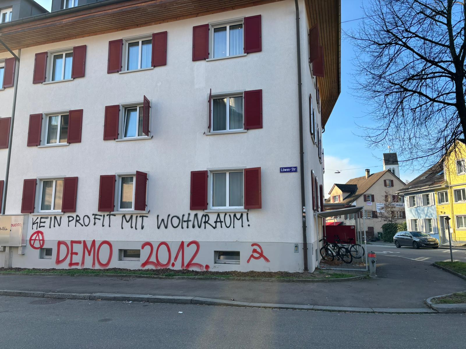 Nach der Berichterstattung über 24 Business-Apartments schlugen Sprayer zu: «Kein Profit mit Wohnraum!» prangt nun an der Fassade. Zudem ist eine Demonstration angekündigt.