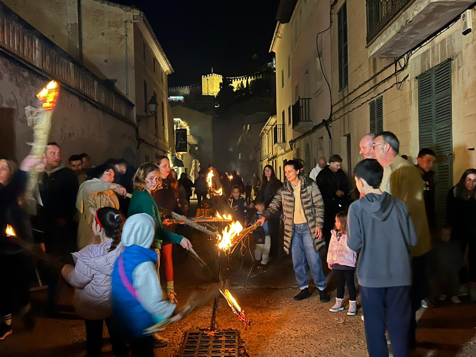 Con la puesta del sol el fuego ha avivado la llama de una tradición ancestral, una fiesta única en la isla y que este año cobra más protagonismo que nunca. Las faies (antorchas) elaboradas con los tallos de la flor del carritx, se han encendido este jueves 18 de diciembre a las 18 horas en el Castell de Capdepera y en la plaza Orient dando paso al Alei-Alei, un rito que aspira a ser declarado Bien de Interés Cultural Inmaterial, una petición trasladada por el Ajuntament al Consell el pasado mes de octubre.