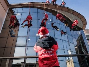 All’ospedale Bambino Gesù di Roma Babbo Natale si cala dall’alto: lo spettacolo dei soccorritori del CNSAS