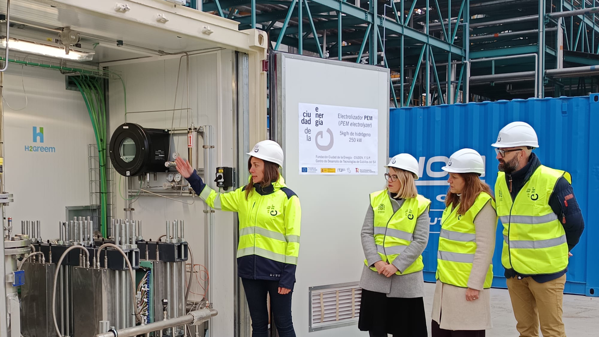 La Fundación Ciudad de la Energía (CIUDEN) ha dado un paso decisivo en su apuesta por las energías limpias con la recepción de un electrolizador de membrana polimérica protónica (PEM) en su Centro de Desarrollo de Tecnologías de Cubillos del Sil (León). Este equipo, que permite producir hidrógeno verde a partir de energía renovable y agua, supone un hito clave para impulsar tecnologías que favorezcan la transición energética sostenible. El proyecto está financiado por el Plan de Recuperación, Transformación y Resiliencia (PRTR) con fondos del programa Next Generation de la Unión Europea. Fabricado en Segovia por la empresa H2GREEM Global Solutions, el electrolizador fue sometido a pruebas de funcionamiento durante la primera mitad de diciembre para asegurar que cumple con los requisitos técnicos de la licitación. El sistema tiene una capacidad nominal de producción de 5 kg/h de hidrógeno con una pureza del 99,999%, operando a presiones de entre 5 y 35 bar y con una potencia eléctrica requerida de 250 kW. Su diseño flexible permite una integración dinámica con distintas fuentes de generación renovable. La tecnología PEM elegida permitirá a CIUDEN trabajar con densidades de corriente elevadas, tiempos de respuesta rápidos y una alta eficiencia, aspectos fundamentales para investigar con la variabilidad de las energías renovables. Además, el equipo cuenta con un sistema de monitorización avanzada que mide en tiempo real el caudal y la pureza del hidrógeno generado, lo que es esencial para optimizar su rendimiento. La generación de oxígeno como subproducto abre también nuevas líneas de investigación para el centro. Judit Carreras, directora del Instituto para la Transición Justa (ITJ), ha destacado la relevancia del proyecto: "la incorporación de este electrolizador a las instalaciones de CIUDEN representa un gran paso para consolidar nuevas oportunidades de desarrollo tecnológico en territorios de transición justa". Según Carreras, "apostar por el hidrógeno renovable no solo impulsa la descarbonización, sino que contribuye a generar actividad, innovación y empleo cualificado en zonas que están redefiniendo su futuro energético". Por su parte, la directora general de la fundación, Yasodhara López, ha subrayado que la nueva infraestructura consolida un ecosistema de innovación único en España. "Con esta nueva infraestructura, CIUDEN avanza en la creación de un ecosistema de desarrollo e innovación único en España. El electrolizador nos permitirá trabajar en condiciones reales de operación, validar soluciones tecnológicas y encontrar nuevas colaboraciones con empresas e instituciones para acelerar su implantación industrial", ha señalado. Con esta incorporación, Ciuden refuerza su papel como centro de referencia en el desarrollo de soluciones energéticas avanzadas y en la promoción del hidrógeno renovable como vector clave para la descarbonización industrial. El objetivo final del proyecto es obtener datos técnicos a escala industrial que permitan optimizar y extrapolar las condiciones de operación de estas tecnologías, facilitando así su implantación en el sector empresarial.