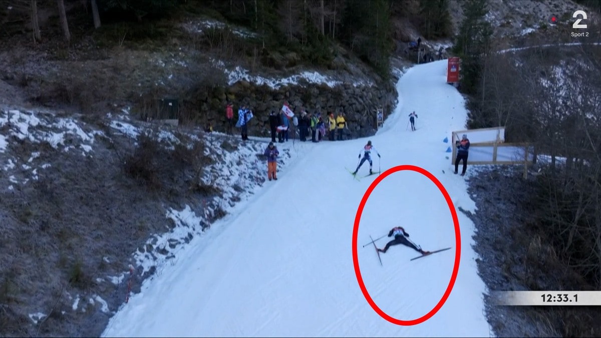Alt var tilsynelatende i orden i kvinnenes kombinertrenn i Ramsau, fram til tyske Nathalie Armbruster la seg ned midt i løypa. Hendelsen sjokkerte TV 2 s kommentatorer.
