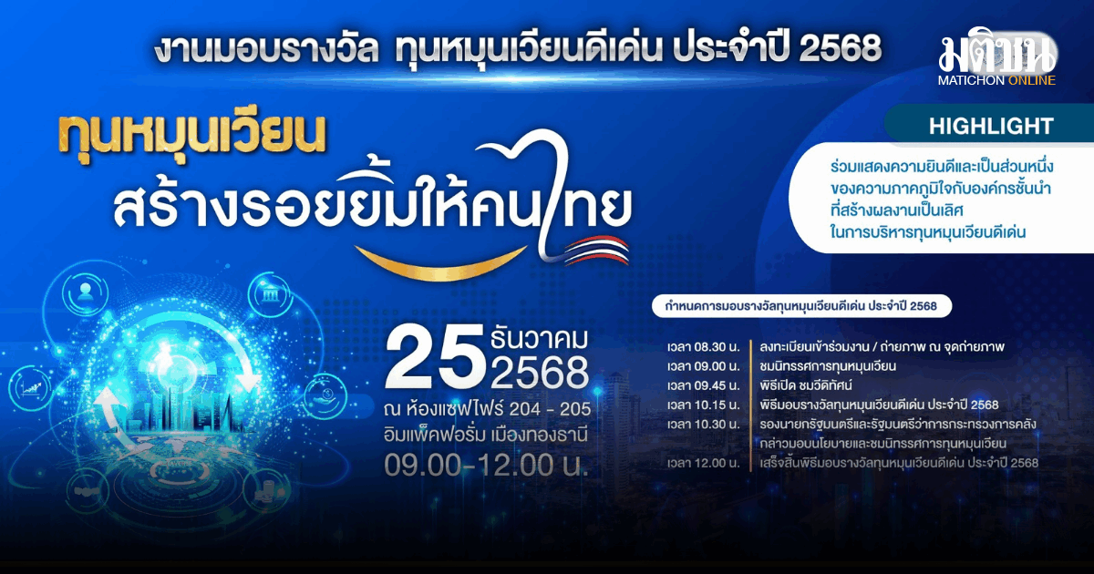 กรมบัญชีกลาง เตรียมมอบรางวัลทุนหมุนเวียนดีเด่น ในงาน ทุนหมุนเวียน สร้างรอยยิ้มให้คนไทย