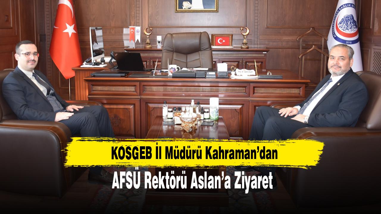AFSÜ Rektörü Prof. Dr. Adem Aslan, KOSGEB Afyonkarahisar İl Müdürü Murat Kahraman’ı makamında kabul etti.