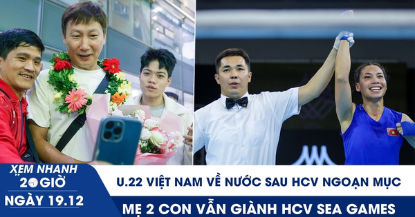 ‘Xem nhanh 20h’ ngày 19.12 có nhiều tin tức đáng chú ý về: U.22 Việt Nam xuất hiện trong sự chào đón của người hâm mộ ở sân bay Nội Bài; mẹ 2 con giành HCV cho quyền anh SEA Games: Đi làm mua sữa cho con;...