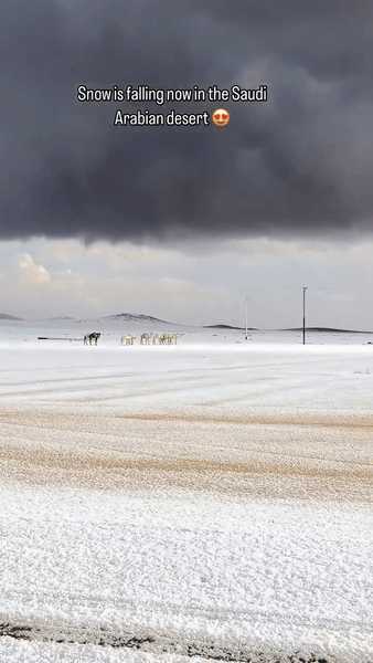 Nord-vestul Arabiei Saudite a fost martorul unui fenomen rar: zăpada a acoperit vaste întinderi deșertice, transformând dunele aurii și dealurile stâncoase într-un peisaj de iarnă spectaculos.