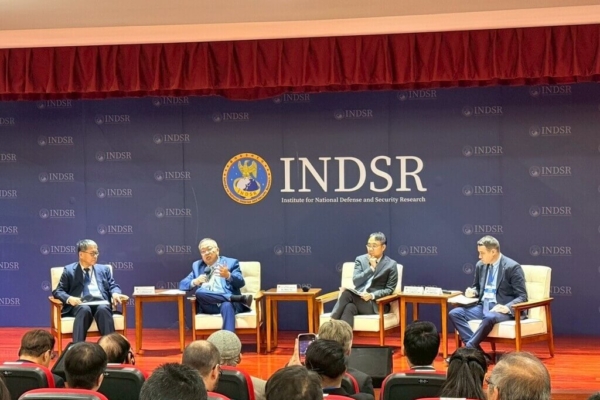 国防院16日举办“印太民主防卫挑战︰混合战、吓阻与制度韧性”座谈会,多名专家学者与会。(国防院提供)