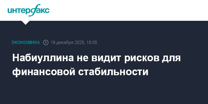 Банк России сейчас не видит рисков для финансовой стабильности, заявила глава ЦБ Эльвира Набиуллина, отвечая на вопрос о влиянии ситуации в финансовом секторе на решения по ключевой ставке."Вопросы финансовой стабильности для нас всегда приоритетны, всегда имеют значение, но сейчас мы не видим никаких рисов финансовой стабильности", - сказала она.