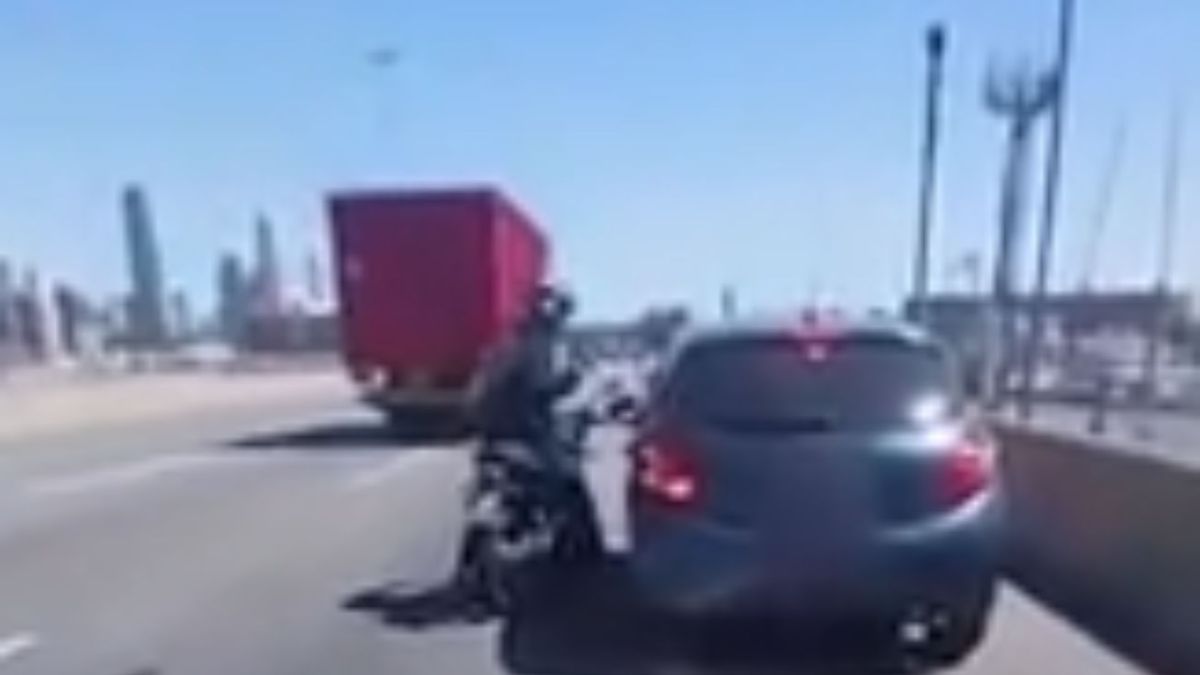 Un motociclista y un conductor de un auto intercambiaron insultos y agresiones mientras circulaban por la autopista.