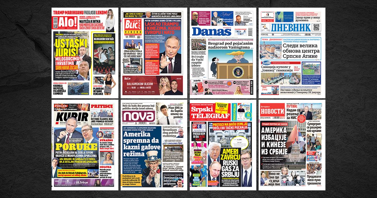 NASLOVNE STRANE SUTRAŠNJIH NOVINA: Prelistavanje štampe za subotu, 20. decembar 2025. godine