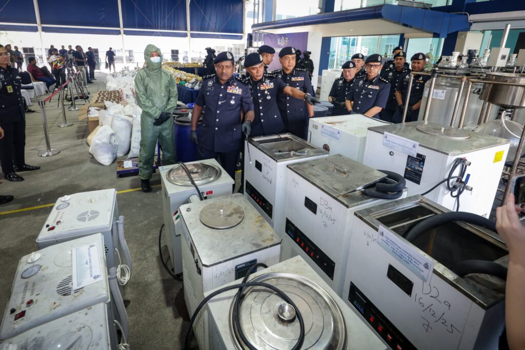 KUALA LUMPUR – Sindiket pengedaran dadah antarabangsa tumpas apabila sebuah banglo tiga tingkat dijadikan makmal haram memproses dadah diserbu Jabatan Siasatan Jenayah Narkotik (JSJN) Bukit Aman, pada Selasa lalu. Pengarah JSJN, Datuk Hussein Omar Khan berkata, operasi bersepadu yang dilancarkan berjaya menahan enam individu terdiri daripada tiga lelaki tempatan dan tiga wanita warga asing berusia ... Read more The post Sindiket antarabangsa tumpas, rampasan RM1.53 bilion di makmal dadah appeared first on Kosmo Digital .