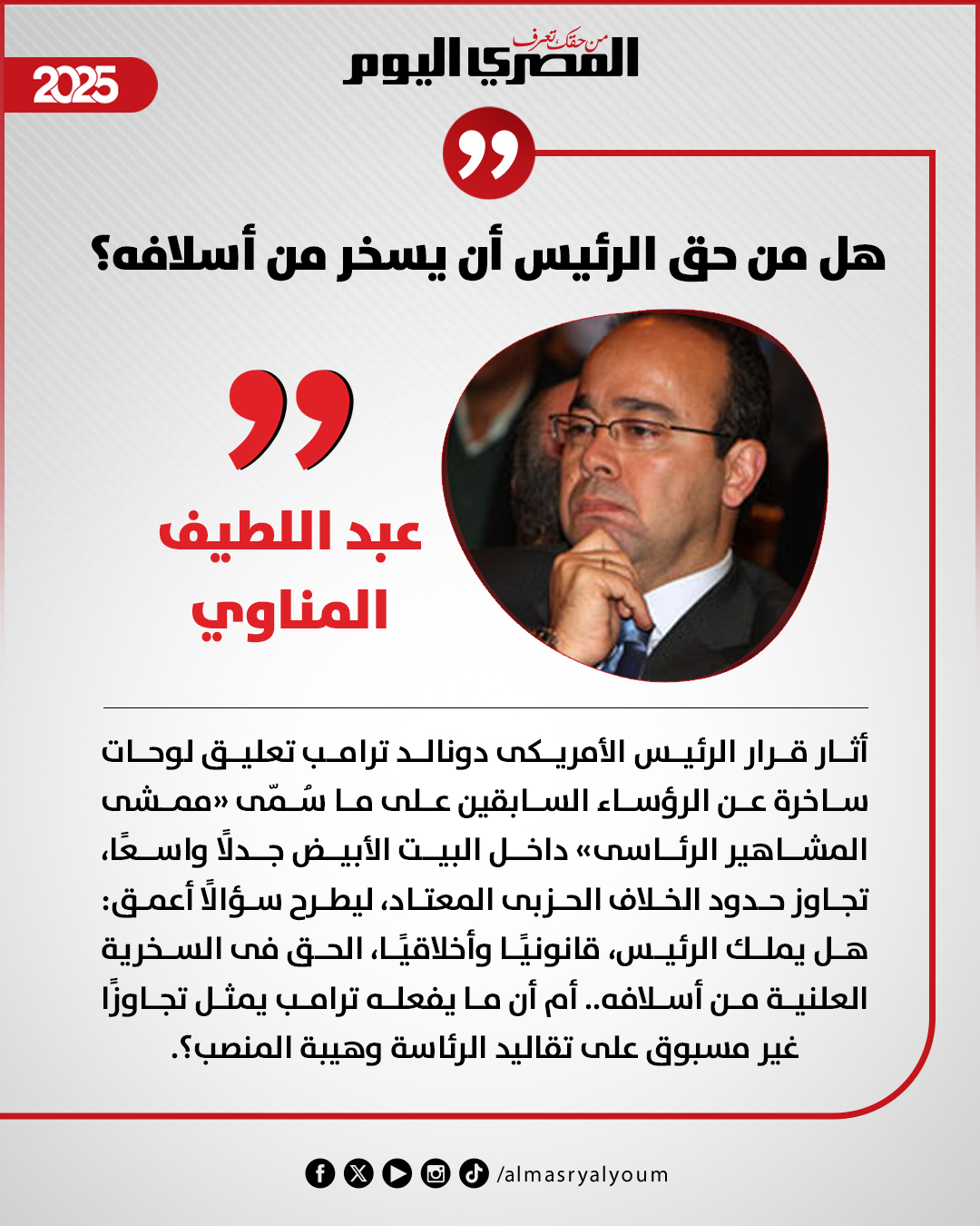 عبد اللطيف المناوي يكتب: هل من حق الرئيس أن يسخر من أسلافه؟