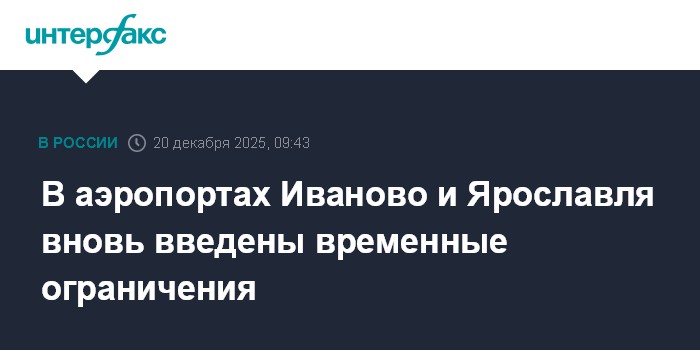 Аэропорты Иваново и Ярославля снова приостановили работу, сообщил официальный представитель Росавиации Артем Кореняко в своем телеграм-канале.