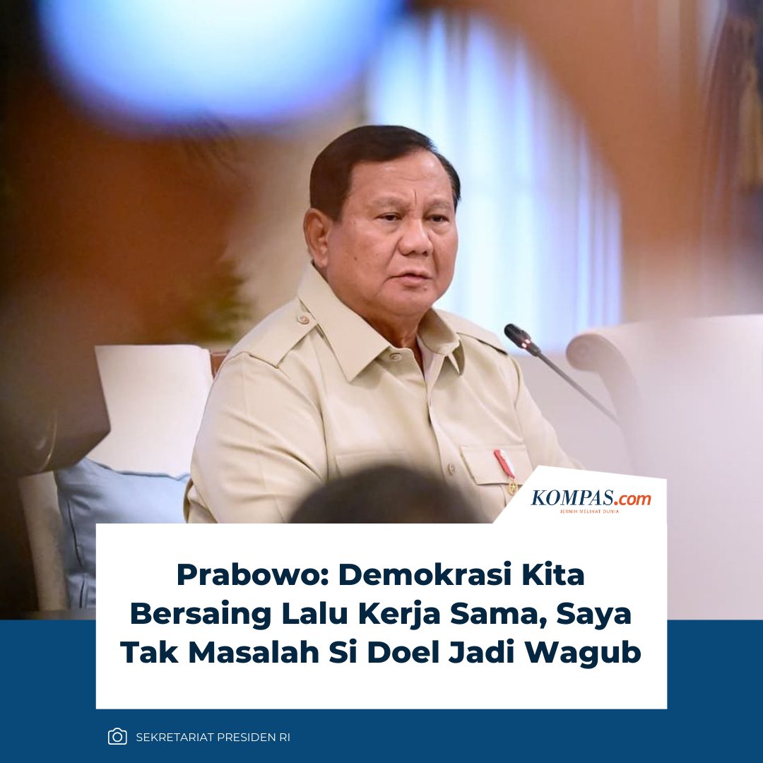 Presiden Prabowo Subianto mengaku tidak mempermasalahkan persaingan politik di Indonesia, contohnya ia tidak masalah politikus PDI-P Rano Karno alias Si Doel menjadi wakil gubernur Jakarta meski berasal dari partai yang berbeda dengan dirinya.