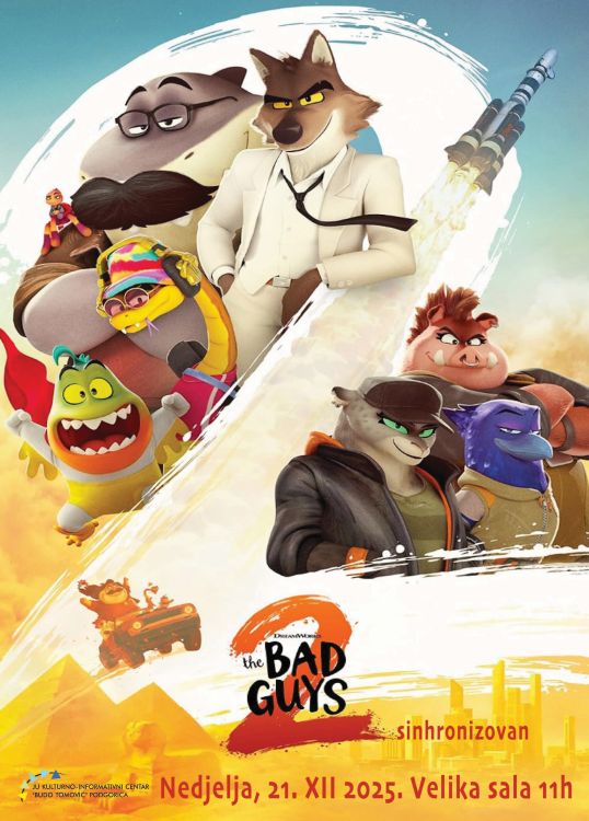 Projekcija dugoočekivanog sinhronizovanog animiranog filma „Loši momci 2/The Bad Guys“ (2025) biće organizovana u okviru filmskog programa KIC-a „Budo Tomović”. Riječ je o filmu koji donosi novu, uzbudljivu i duhovitu avanturu omiljene ekipe junaka koja se suočava sa nizom urnebesnih situacija. Nakon što su pokušali da ostave svoje nestašluke iza sebe, Vuk i njegova vesela […]