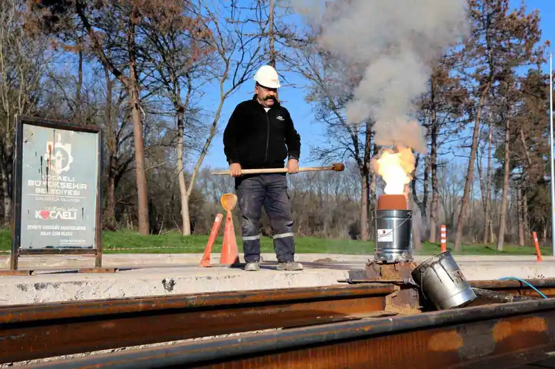 kartepe tramvay hattı’nda raylar kaynak ile birleşiyor