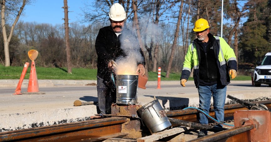 Kartepe Tramvay Hattı’nda raylar kaynak ile birleşiyor