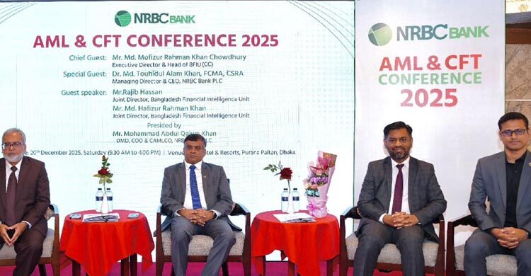 অর্থপাচার ও সন্ত্রাসে অর্থায়ন প্রতিরোধে কর্মকর্তাদের সক্ষমতা বৃদ্ধি ও সচেতনতা সৃষ্টির লক্ষ্যে প্রথমবার কৃত্রিম বুদ্ধিমত্তা (এআই) প্রযুক্তি ব্যবহার করে ‘এএমএল অ্যান্ড সিএফটি কনফারেন্স ২০২৫’ আয়োজন করেছে এনআরবিসি ব্যাংক। শনিবার (২০ ডিসেম্বর) রাজধানীর একটি হোটেলে হাইব্রিড পদ্ধতিতে এই সম্মেলন অনুষ্ঠিত হয়। সম্মেলনে প্রধান অতিথি হিসেবে উপস্থিত ছিলেন বাংলাদেশ ব্যাংকের নির্বাহী পরিচালক ও বাংলাদেশ ফাইন্যান্সিয়াল ইন্টেলিজেন্স ইউনিটের (বিএফআইইউ) প্রধান (ভারপ্রাপ্ত) মো. মফিজুর রহমান খান চৌধুরী। বিশেষ অতিথি ছিলেন এনআরবিসি ব্যাংকের ব্যবস্থাপনা পরিচালক ও প্রধান নির্বাহী কর্মকর্তা ড. মো. তৌহিদুল আলম খান। এনআরবিসি ব্যাংকের প্রধান মানি লন্ডারিং প্রতিরোধ ও পরিপালন কর্মকর্তা (ক্যামেলকো) ও উপ-ব্যবস্থাপনা পরিচালক মোহাম্মদ আব্দুল কাইয়ুম খানের সভাপতিত্বে সম্মেলনে বিএফআইইউয়ের যুগ্ম পরিচালক রাজিব হাসান ও মো. হাফিজুর রহমান খান এবং এআই নির্ভর অনলাইন প্ল্যাটফর্ম ‘কনভে’ এর মাধ্যমে ব্যাংকের বিভিন্ন পর্যায়ের কর্মকর্তারা অংশ নেন। দিনব্যাপী এই সম্মেলনে মানি লন্ডারিং ও সন্ত্রাসে অর্থায়ন প্রতিরোধ সংক্রান্ত বিদ্যমান আইন, বাংলাদেশ ব্যাংকের সর্বশেষ নির্দেশনা, গ্রাহক শনাক্তকরণ (কেওয়াইসি), লেনদেন পর্যবেক্ষণ, সন্দেহজনক লেনদেন (এসটিআর/এসএআর) প্রস্তুত ও দাখিলসহ শাখা পর্যায়ের কমপ্লায়েন্স কার্যক্রম জোরদারের বিভিন্ন দিক নিয়ে আলোচনা করা হয়। একই সঙ্গে বাস্তবভিত্তিক অভিজ্ঞতা ও কেস স্টাডি উপস্থাপনের মাধ্যমে অংশগ্রহণকারীদের দক্ষতা বৃদ্ধির ওপর গুরুত্ব দেওয়া হয়। প্রধান অতিথির বক্তব্যে মো. মফিজুর রহমান খান চৌধুরী বলেন, মানি লন্ডারিং ও সন্ত্রাসে অর্থায়ন প্রতিরোধে ব্যাংকিং খাতে একটি শক্তিশালী, ঝুঁকিভিত্তিক ও টেকসই কমপ্লায়েন্স কাঠামো গড়ে তোলা অপরিহার্য। এ লক্ষ্যে প্রধান কার্যালয়ের সংশ্লিষ্ট বিভাগের পাশাপাশি শাখা মানি লন্ডারিং প্রতিরোধ পরিপালন কর্মকর্তাদের (ব্যামেলকো) ভূমিকা আরও সুসংহত ও কার্যকর করা প্রয়োজন। তিনি নিয়মিত সক্ষমতা উন্নয়ন, কার্যকর লেনদেন পর্যবেক্ষণ ব্যবস্থা এবং সন্দেহজনক লেনদেন যথাসময়ে শনাক্ত, বিশ্লেষণ ও প্রতিবেদন দাখিলের ওপর বিশেষ গুরুত্বারোপ করেন। মো. মফিজুর রহমান আরও বলেন, ব্যাংকিং ব্যবস্থায় স্বচ্ছতা, জবাবদিহিতা ও সুশাসন নিশ্চিত করতে বাংলাদেশ ব্যাংক ও বিএফআইইউ নীতিগত দিকনির্দেশনা ও তদারকি কার্যক্রম অব্যাহত রাখবে। এনআরবিসি ব্যাংকের ব্যবস্থাপনা পরিচালক ও প্রধান নির্বাহী ড. মো. তৌহিদুল আলম খান বলেন, আর্থিক খাতে সুশাসন, স্বচ্ছতা ও ঝুঁকিনিয়ন্ত্রণ নিশ্চিত করতে মানি লন্ডারিং ও সন্ত্রাসে অর্থায়ন প্রতিরোধ সংক্
