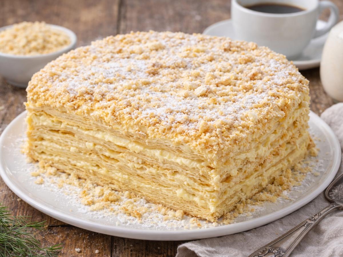 Хрустящий "Наполеон" — тот самый торт, ради которого стоит немного потрудиться. Тонкие слоёные коржи, стабильный заварной крем и аккуратная сборка дают результат, который легко спутать с кондитерским. При этом все секреты успеха просты и доступны для домашней кухни. Об этом сообщает ГАСТРОНОМЪ. В чём секрет по-настоящему хрустящего Наполеона Главная задача — сохранить слоистость коржей и не дать им размокнуть. Для этого тесто готовят из очень холодных ингредиентов, добавляют немного уксуса для лучшего расслоения и выпекают коржи с сахарной пудрой. Крем должен быть плотным и устойчивым, а не текучим — именно он "держит" текстуру торта. Ингредиенты для торта Наполеон Для теста пшеничная мука — 480 г