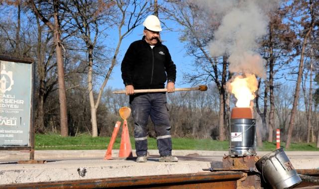 Kocaeli Büyükşehir Belediyesi, raylı sistem ağını bu kez “Kartepe Tramvay Hattı” ile güçlendiriyor. Kenti demir ağlarla ören Büyükşehir, bu hatta döşenen raylarda kaynak işlemlerine başladı.