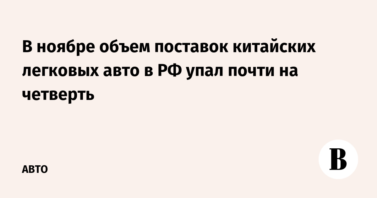 В ноябре объем поставок китайских легковых авто в РФ упал почти на четверть