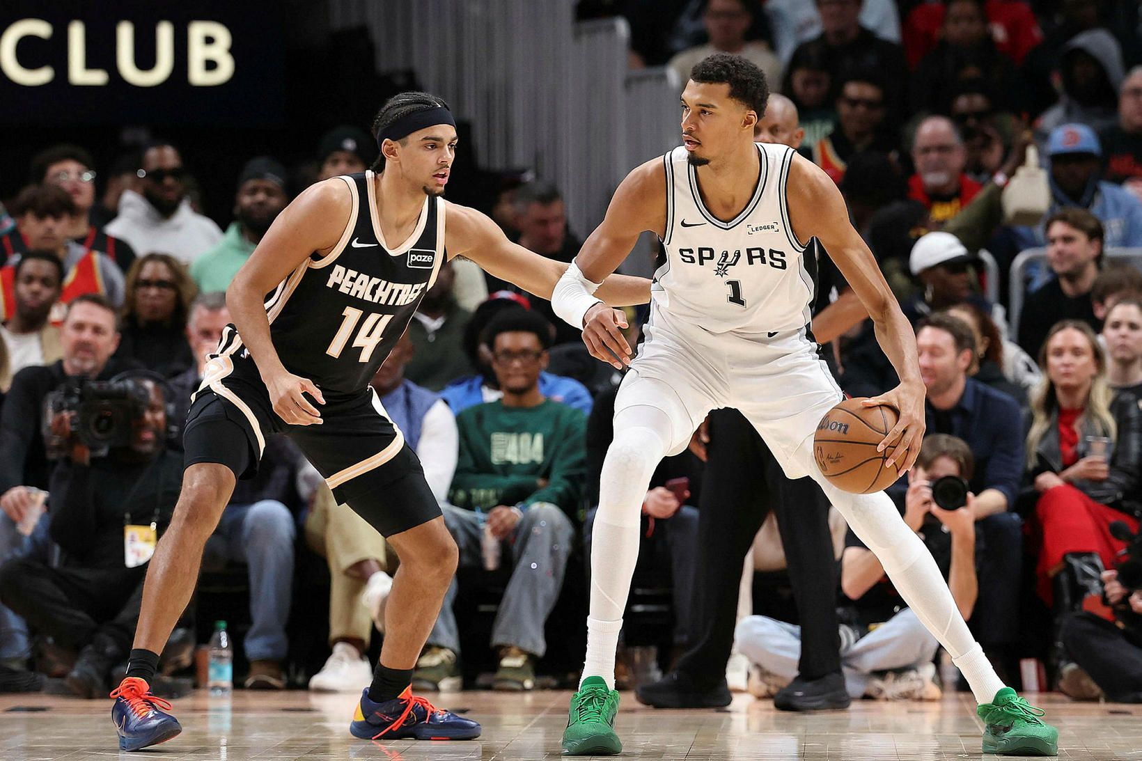 Franski risinn Victor Wembanyama náði ótrúlegum áfanga í leik gegn Atlanta Hawks í nótt. Victor Wembanyama, sem er 2,24 metrar á hæð, skoraði 26 stig, tók 12 fráköst og gaf þrjár stoðsendingar í sigri gegn Atlanta.