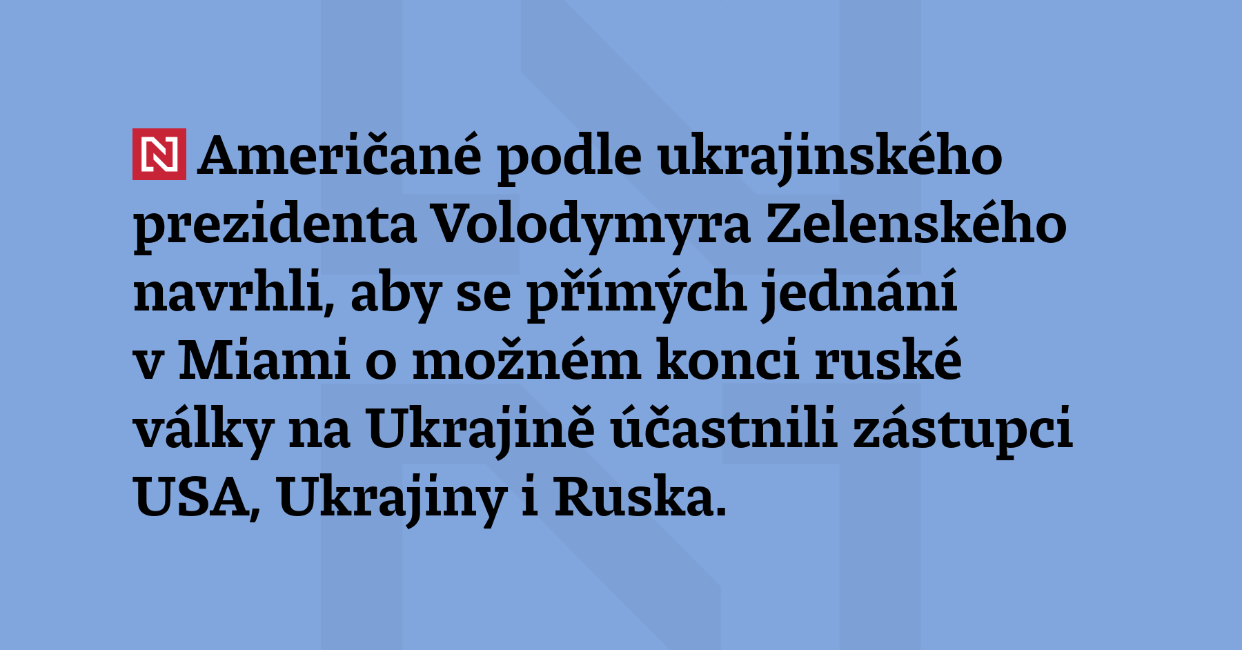 Američané podle ukrajinského prezidenta Volodymyra Zelenského navrhli, aby se přímých jednání v Miami o možném konci ruské války na Ukrajině účastnili zástupci USA, Ukrajiny i Ruska. (ČTK)