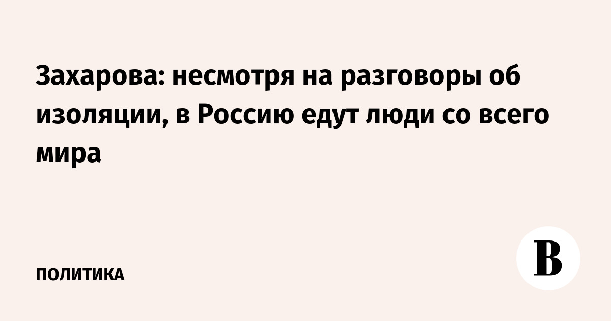 Захарова: несмотря на разговоры об изоляции, в Россию едут люди со всего мира