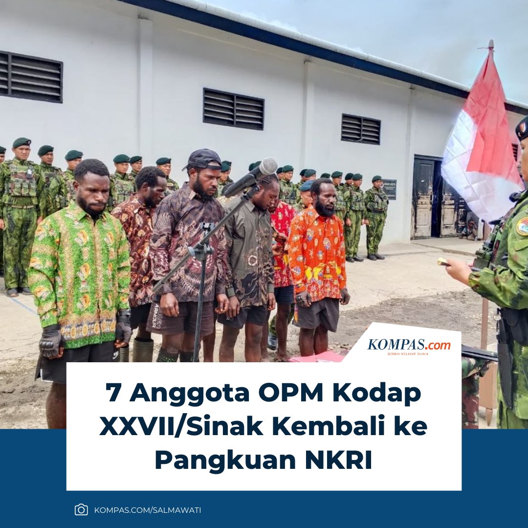 Tujuh anggota Tentara Pembebasan Nasional Papua Barat Organisasi Papua Merdeka (TPNPB-OPM) Kodap XXVII/Sinak yang selama ini terlibat dalam aksi kekerasan dan teror bersenjata kembali ke pangkuan Negara Kesatuan Republik Indonesia (NKRI).