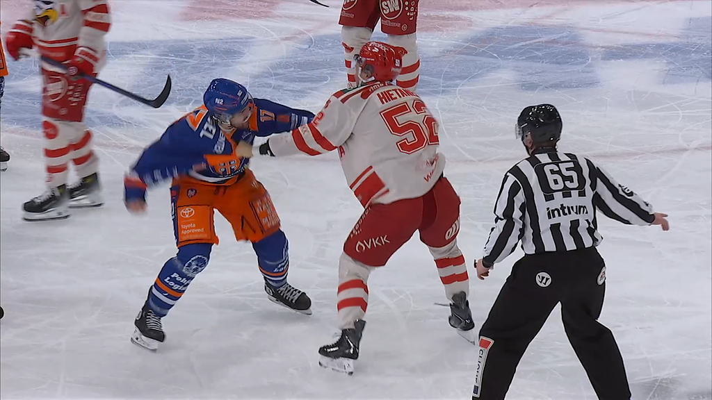 Tapparan Ondrej Pavel ja Sportin Valtteri Hietanen ottivat rajun nyrkkitappelun lauantain SM-liigakierroksella.