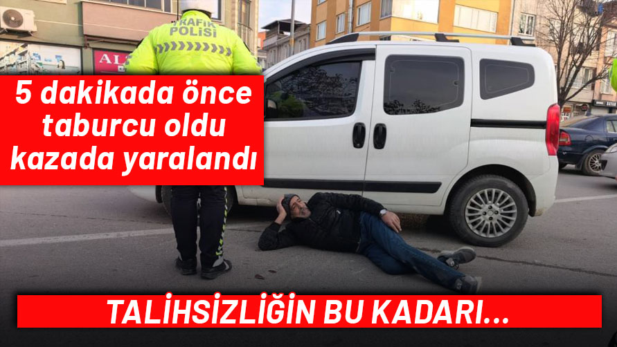 Taburcu olduktan beş dakika sonra araba çarpan adam hastaneye kaldırıldı